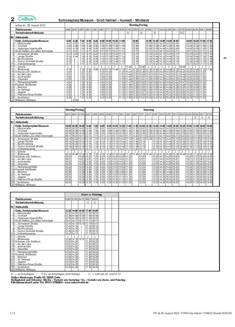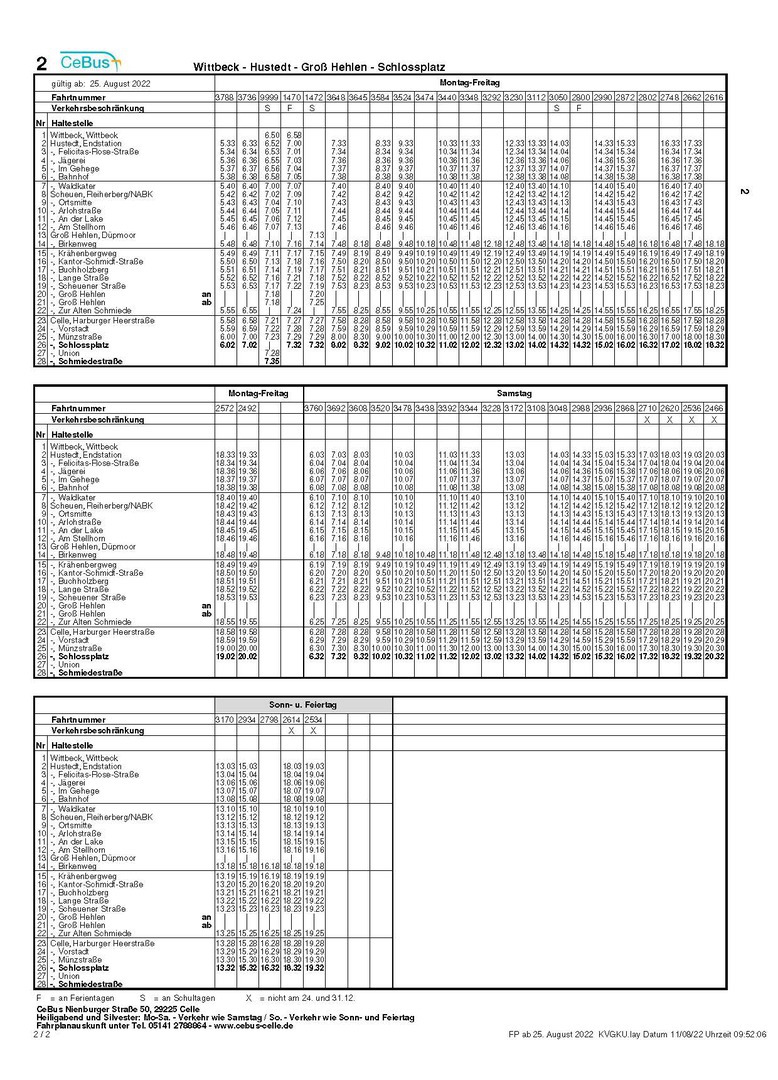 Hier der Aktuelle Fahrplan der Linie 2